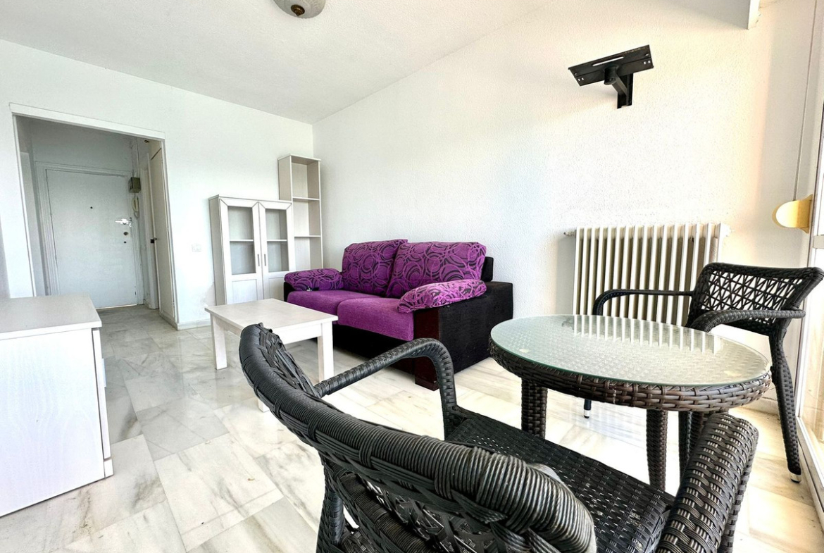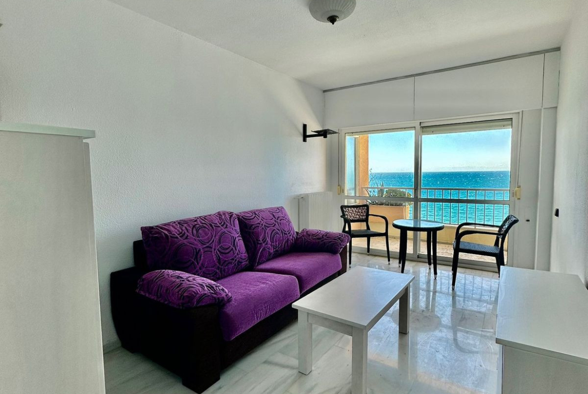 Partially renovated 25 m² studio located in an exclusive gated community right on the beachfront. Situated in one of Marbella’s most sought-after areas, this charming property offers breathtaking sea views — you'll feel like you're on a boat!