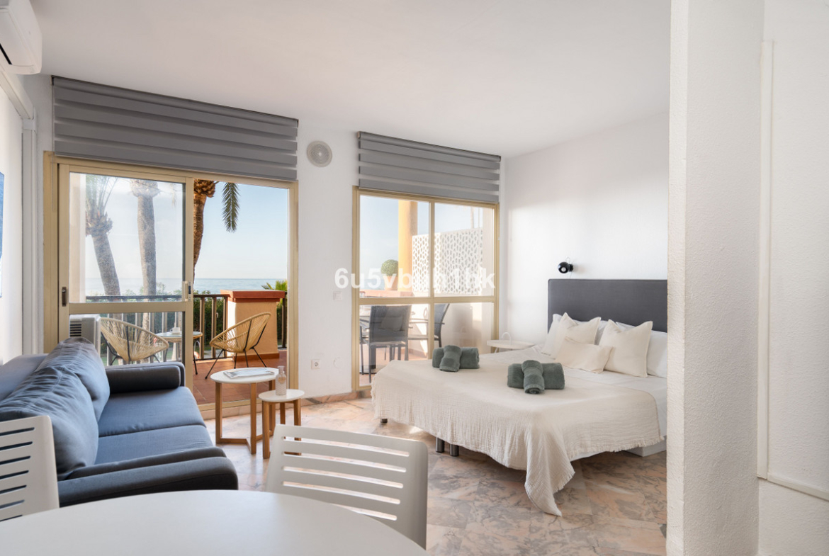 Discover one of Elviria’s most attractive frontline-beach investment opportunities: a bright, south-facing studio that combines unbeatable location, newly refreshed features, and exceptional rental performance. Set within a secure gated community with a swimming pool and private parking, this property sits just steps from Elviria’s golden dunes, the scenic sandy beach walk, and world-famous beach clubs like the always-vibrant Nikki Beach.
