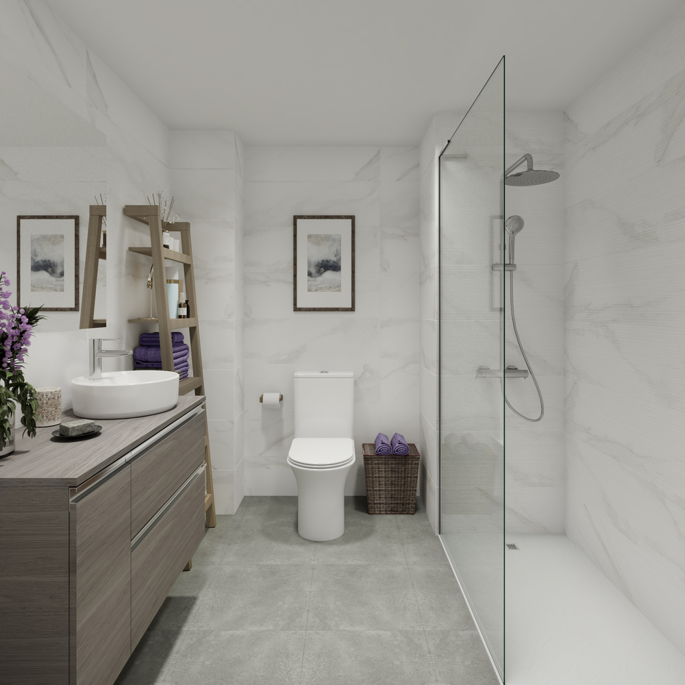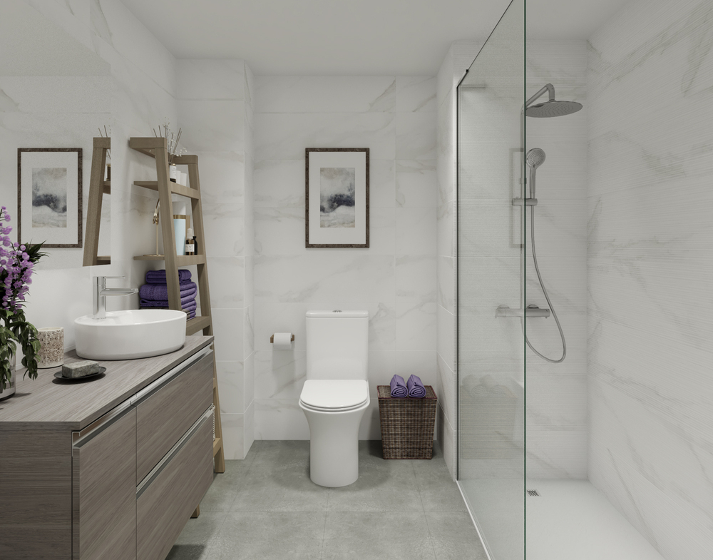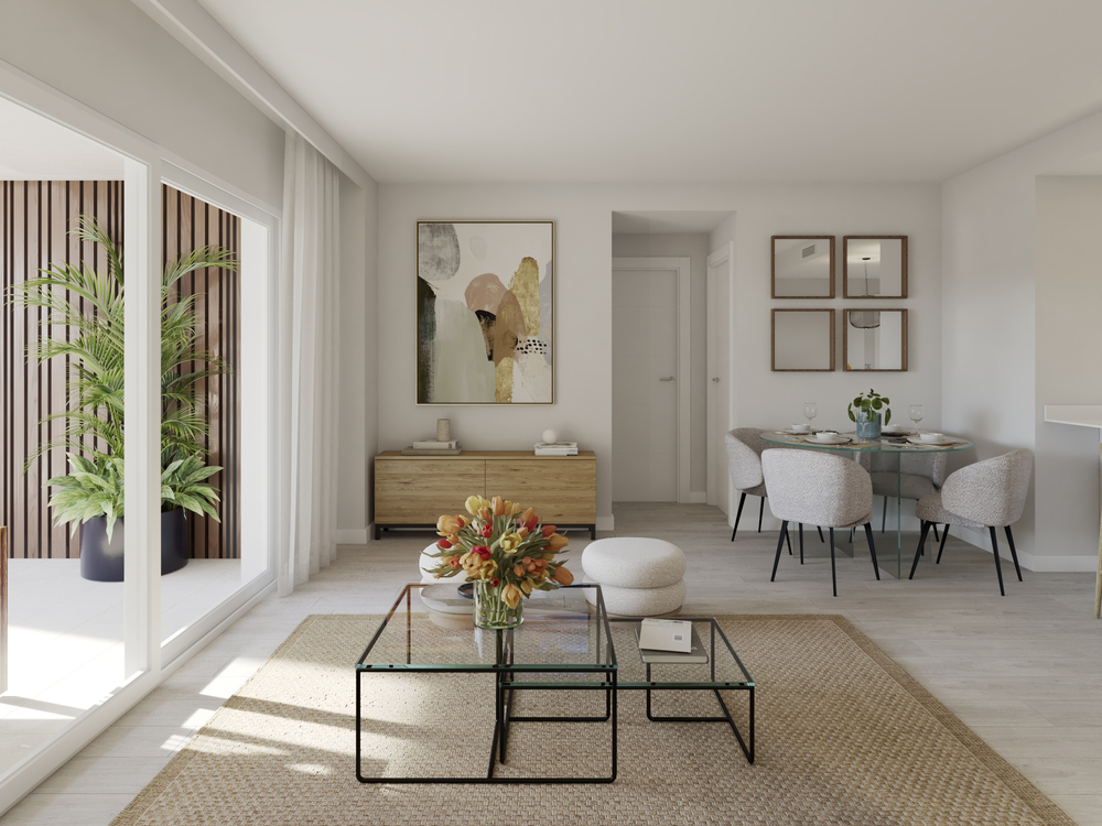 The last remaining 2 bedroom apartments feature modern design and high quality finishings. All homes have large terraces with glass railings to enjoy both the inside and the outside of your home, modern kitchens integrated into the living-dining room and parking spaces on the ground floor.
