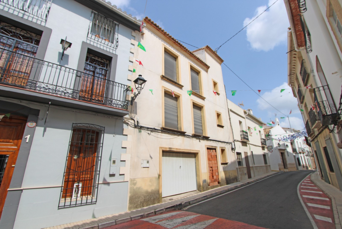 Village house for sale to reform in Murla. The house is located in a very quiet area and consists of 3 floors. The ground floor includes an entrance hall and a garage for 2 cars. The first and second floors are open plan and can be renovated to suit your taste. The property is very close to all services such as supermarkets and restaurants. The nearest beaches are 25 minutes away. The largest shopping center in the area is in Ondara, less than 20 minutes by car, as well as the highway to Valencia (1 hour) and Alicante (1 hour).